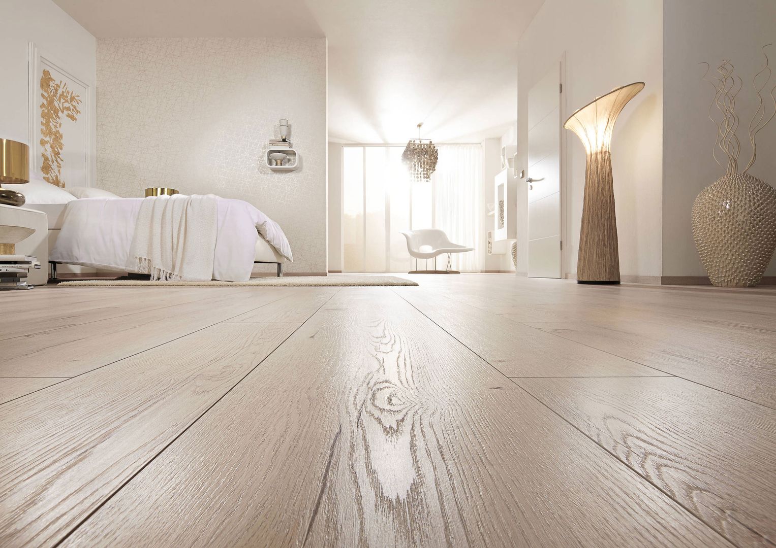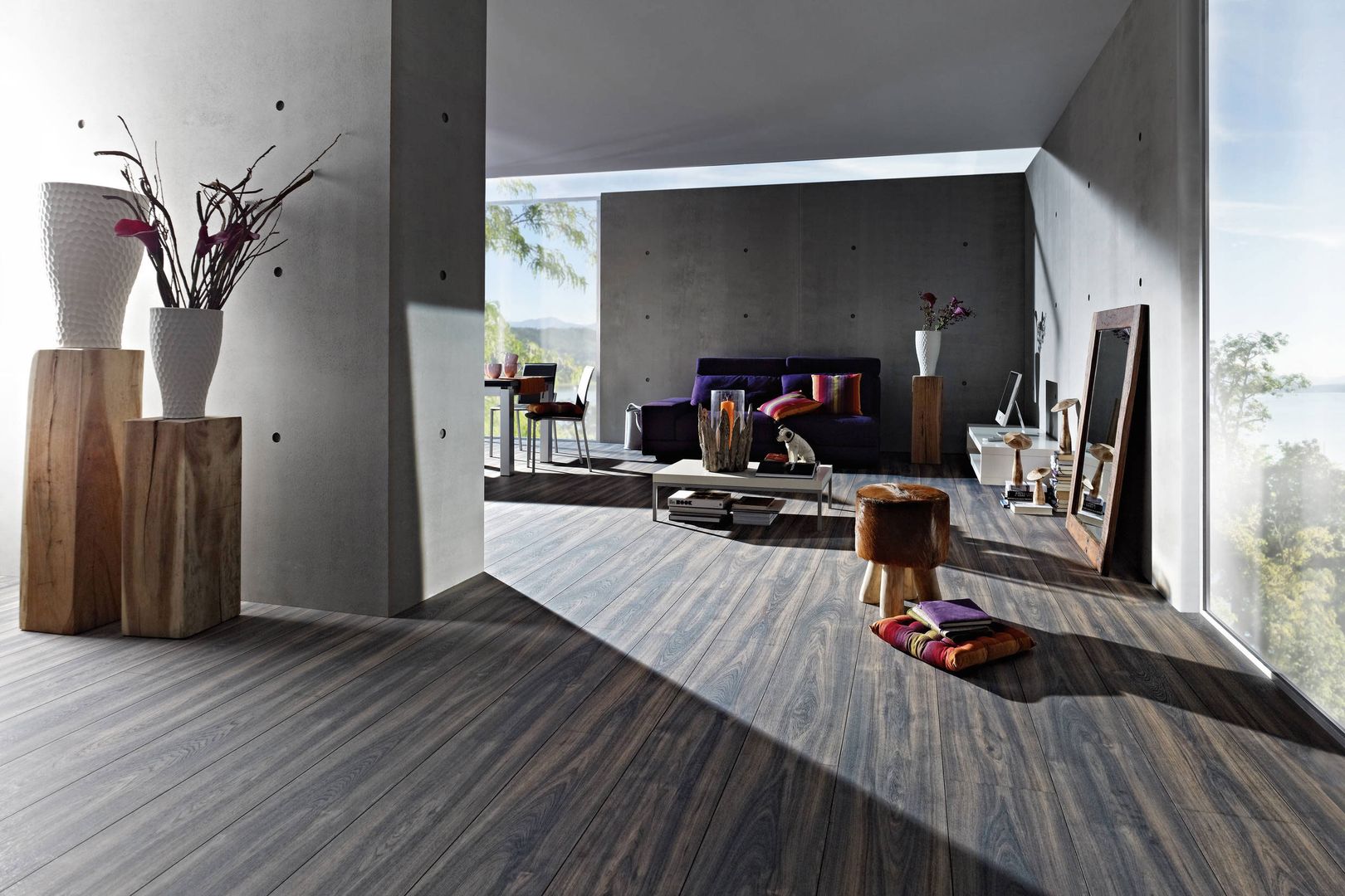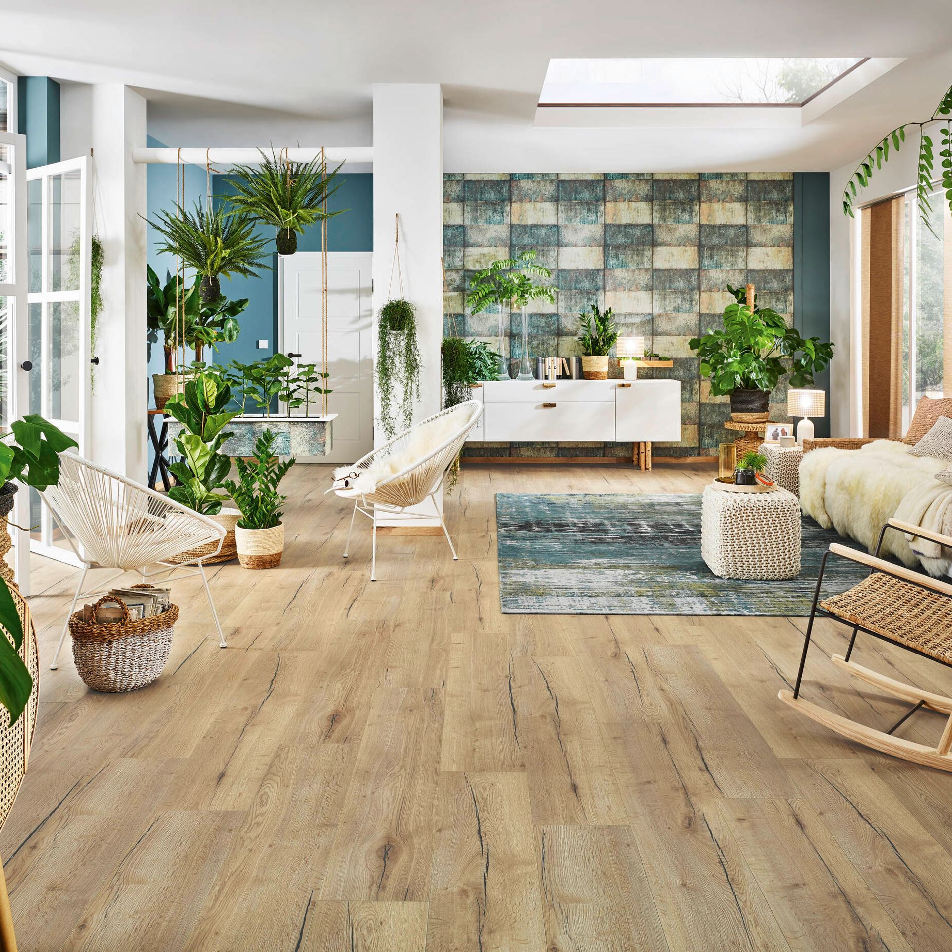 Was für den Laminatboden spricht: Zunächst einmal ist er sehr robust und besonders strapazierfähig. Diese Eigenschaften verdankt er den unter hohem Druck und ebensolchen Temperaturen gepressten Schichten. Die Deckschicht garantiert außerdem eine hohe Abriebfestigkeit. Laminat ist ein reiner Dekorboden, daher ist durch den digitalen Druck auf der Deckschicht praktisch alles an Design und Gestaltung möglich. Favorit ist aber immer noch die gute alte Holzoptik, die dem Parkett meist zum Verwechseln ähnlich sieht. Außerdem sind Laminate perfekt für Fußbodenheizungen geeignet – und meist sogar nebelfeucht wischbar, also äußerst pflegeleicht.