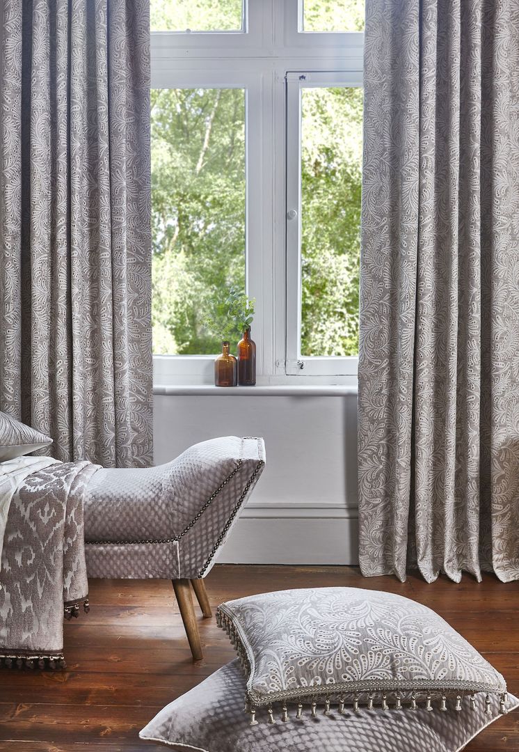 Raumhohe Vorhänge schweben entweder knapp über dem Boden oder liegen auf. Die schwebende Variante lässt sich besser sauber halten. Die aufliegende Gardine gibt einem Raum einen lässigen Chic, ist aber beim Staubsaugen oder Wischen unpraktisch.